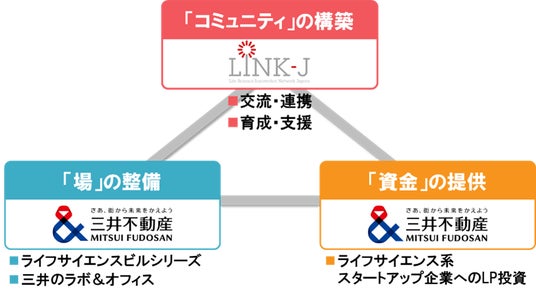 三井不動産が展開する(1)研究・事業サポート、(2)コミュニケーション・ネットワークサポートプログラムです。「LINK-BioBAY TOKYO」の取り組みと連携します。
