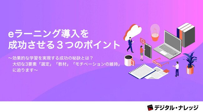 導入実績2000超を誇るeラーニング専門ソリューション企業、株式会社デジタル・ナレッジ(本社:東京都台東区、代表取締役社長:はが弘明)は、ホワイトペーパー『eラーニング導入を成功させる3つのポイント』を本日より無料ダウンロード開始いたしました。