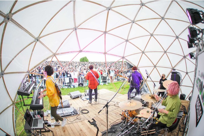 最後の「knock you , knock me」でとりわけハッピーな空気に包まれた会場に、自然と沸き立った手拍子が幸福感をさらに上乗せ。地元大阪での過去最大規模の野外イベント出演という記念すべき日に、心地いい余韻と予感を残してステージを後にしたドラマストアだった。