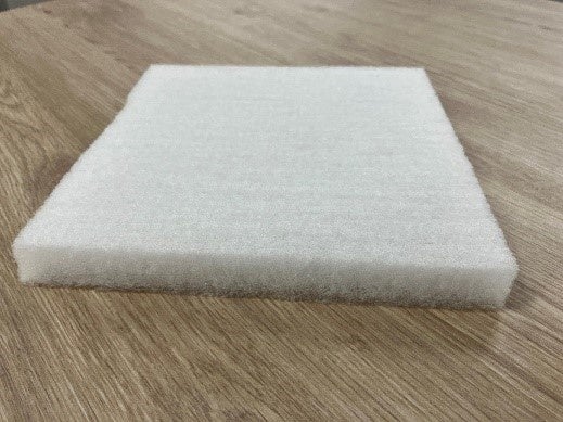 ポリエステル繊維で作られたタテ型構造の特殊高機能不織布です。通常の不織布と異なり、繊維がタテ方向にならんでいることで、反発性が高く、断熱性や吸音性にも優れた軽量な素材です。そのクッション性が活かされ敷布団や電車のシート、吸音性と軽さが活かされ自動車の吸音材などに採用されています。