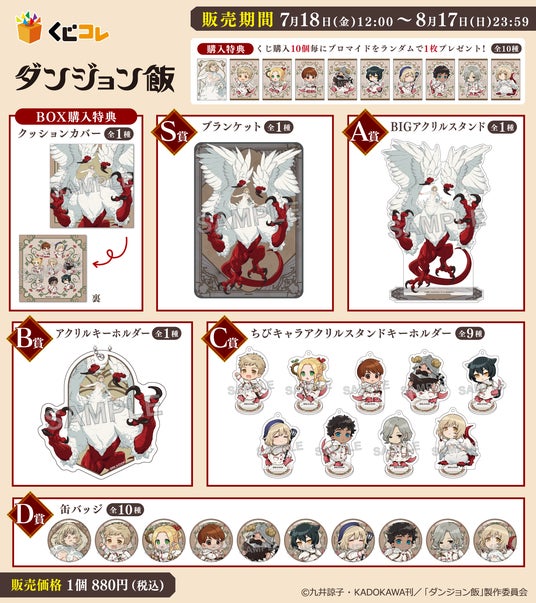 株式会社エディア(本社:東京都千代田区、代表取締役社長:賀島 義成)の子会社、株式会社ティームエンタテインメント(本社 :東京都千代田区、代表取締役社長 :賀島 義成 以下 :ティームエンタテインメント)は、2025年7月18日(金)12:00よりTVアニメ『ダンジョン飯』のオリジナルグッズを、インターネットで購入できるオンラインくじサービス『くじコレ』にて販売開始したことをお知らせいたします。
