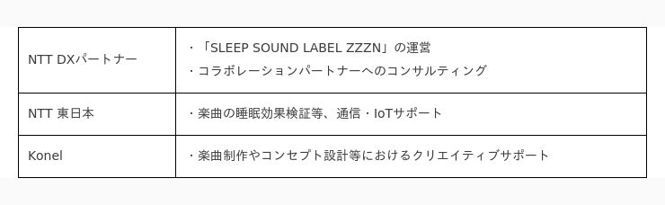 「SLEEP SOUND LABEL ZZZN」として、新たなアーティスト、プロデューサーなどによる楽曲の追加配信、各地域や企業向けの睡眠をテーマにした音楽イベントの開催や、音楽の可能性をさらに高める研究などを実施予定です。