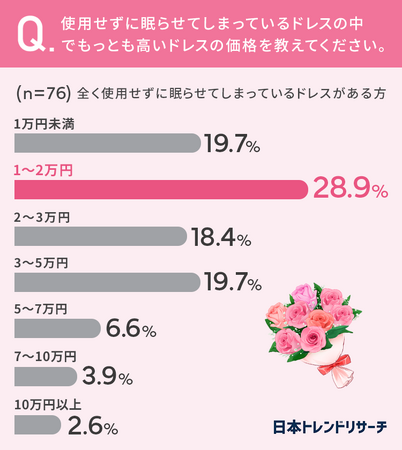続いて、使用せずに眠らせてしまっているドレスの中でもっとも高いドレスの値段は、いくらくらいだったか聞いてみました。