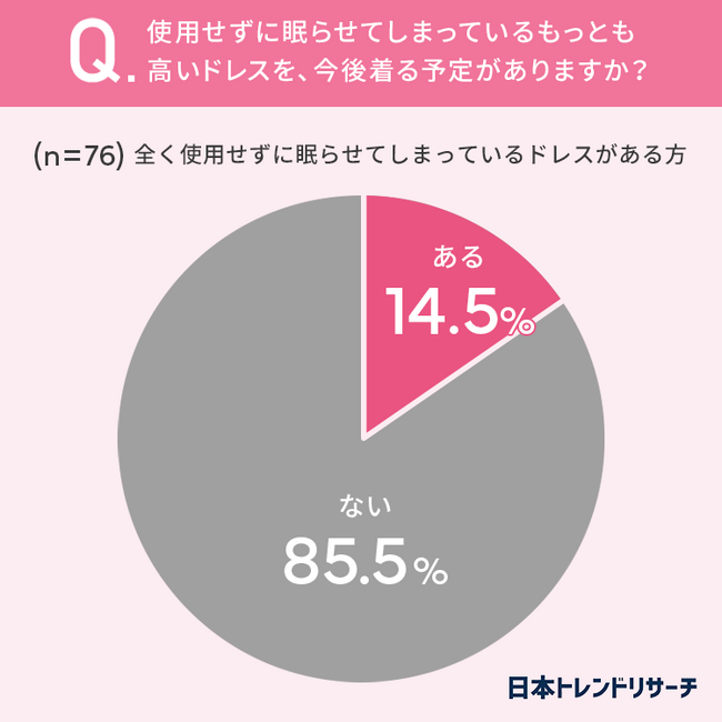 また、使用せずに眠らせてしまっているもっとも高いドレスを、今後着る予定があるかも聞いてみました。