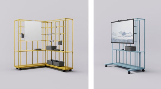 抜け感と囲われ感を両立した可動仕切り。プロジェクトの内容や人数に合わせて区画を変更でき、多様な人に合わせて居心地や居場所を調整できます。またホワイトボードやトレーなどのさまざまなオプションをカスタマイズして利用できます。70インチ(40kg)までのディスプレイも取り付け可能で、プロジェクトワークに必要な機能を兼ね備えています。