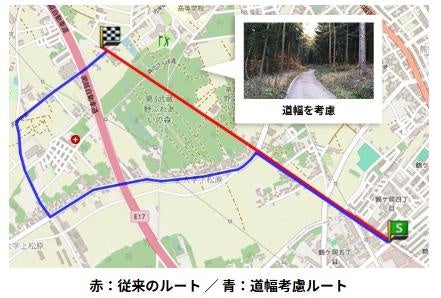 登録した車種の車幅に合わせたルート探索が可能になりました。車幅の広い車には優先的に広い道を案内するので、より快適で安心なドライブを楽しめます 。