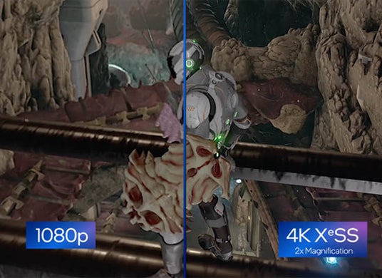 Intel Xe SSのAIによるアップスケーリング機能や、AV1ハードウェアエンコードなど、Intel Arcの独自機能をサポート