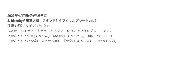 ■『IdentityV 第五人格』のナムコオリジナルプライズが登場!