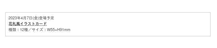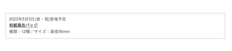 オリジナルノベルティは、2023年4月7日(金)から「花札風イラストカード(全12種)」が、5月5日(金・祝)から「和紙風缶バッジ(全12種)」が追加で登場します。