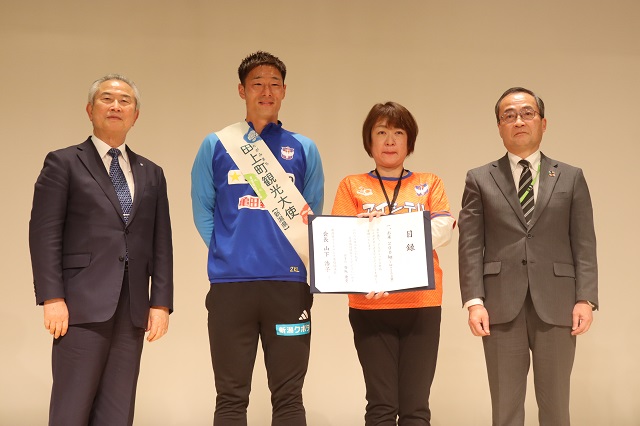 ※コープデリにいがたより、お米400kgの寄付をいただきました。3月29日(水)に開催された田上町観光大使就任式にて、新潟県フードバンク連絡協議会に寄贈しています。