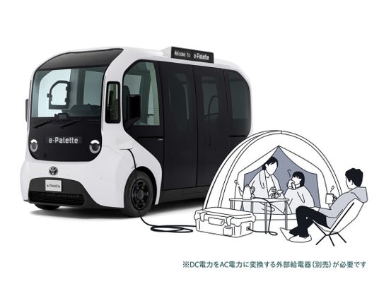 e-Paletteは、広い室内空間や大型ウインドウガラスによる開放感を活かして、人々の移動手段にとどまらず移動する店舗やサービス空間など、一台のクルマを使ってさまざまなモビリティサービスに対応可能なモビリティです。広い車内空間を活かし、人の移動だけでなく、移動販売やサービス提供など多様な用途に対応できる設計となっており、地域や利用シーンに応じて柔軟な活用が可能です。また、EVとして走行時にCO2や排気ガスを排出せず、給電機能を備えていることから、平時の移動に加え、災害時の非常用電源としての活用も期待されています。