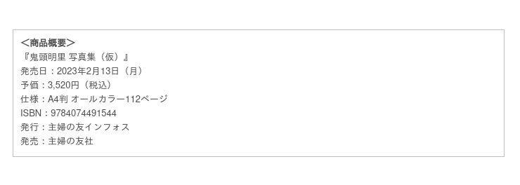 『鬼滅の刃』竈門禰豆子役、『ラブライブ!虹ヶ咲学園スクールアイドル同好会』近江彼方役など話題作へ多数出演し、先週10月12日には2ndアルバム『Luminous』をリリースするなどソロアーティストとしても活躍する人気声優・鬼頭明里の写真集が来年2023年2月13日に発売される。鬼頭さんの誕生日である本日10月16日、先行カットと共に解禁となった。