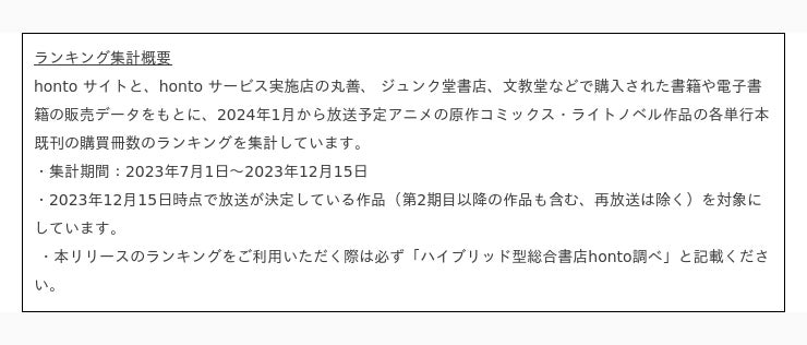 2024年冬アニメ原作ランキングについてハイブリッド型総合書店honto広報担当が解説