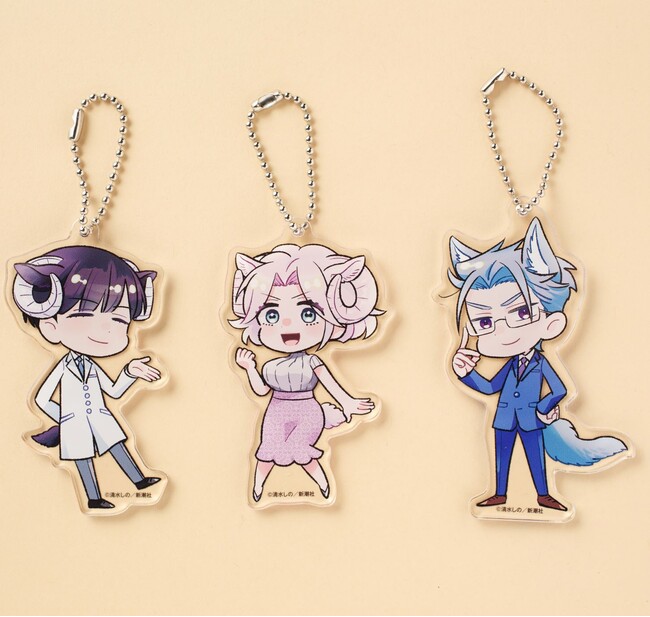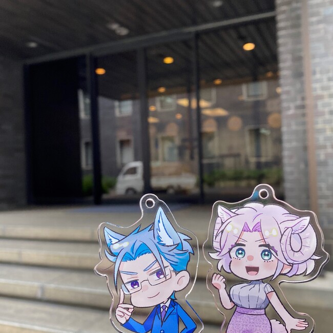 企画部の大神くんと未辻さん、研究開発室の美角さんがアクリルキーホルダーになりました。