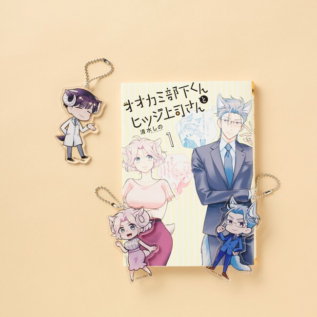 コミックス最新4巻が4月7日に発売となる『オオカミ部下くんとヒツジ上司さん』。清水しの先生による描き下ろしのミニキャラがかわいいアクリルキーホルダーは新潮ショップにて好評販売中です。
