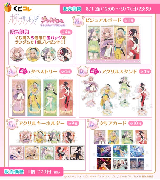 株式会社エディア(本社:東京都千代田区、代表取締役社長:賀島 義成)の子会社、株式会社ティームエンタテインメント(本社 :東京都千代田区、代表取締役社長 :賀島 義成 以下 :ティームエンタテインメント)は、2025年8月1日(金)12:00よりアニメ「ポールプリンセス!!」新規イラストによるオリジナルグッズを、インターネットで購入できるオンラインくじサービス『くじコレ』にて販売開始したことをお知らせいたします。