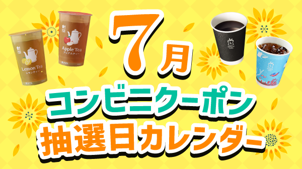 合計90万7千名様に当たる!「7月コンビニクーポン抽選日カレンダー」
