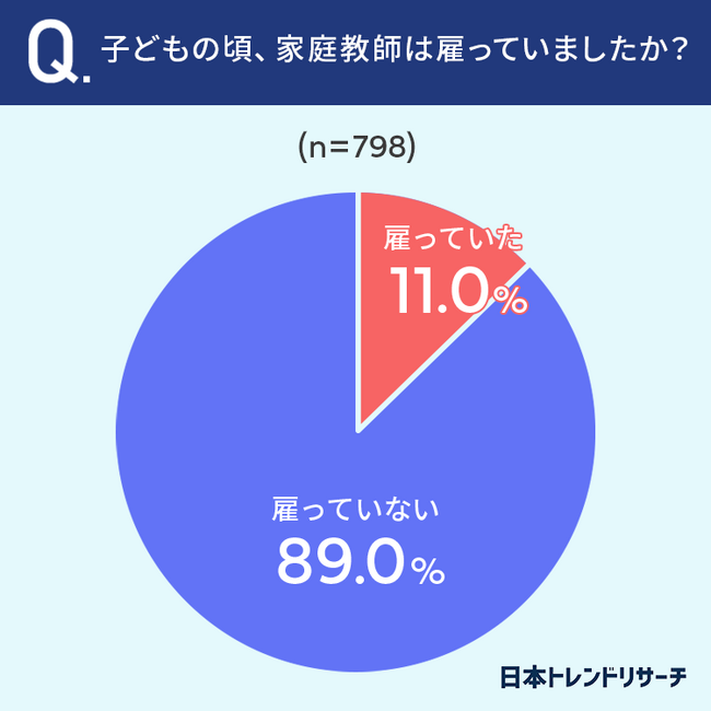 11%の方が「子どもの頃、家庭教師を雇っていた」と回答しています。