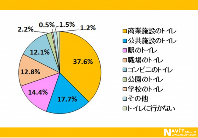 外出時に利用するトイレで最も多いのは「商業施設のトイレ」で、回答数の37.6%と3分の1超という結果になりました。
