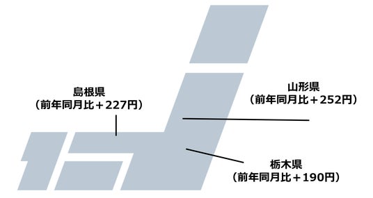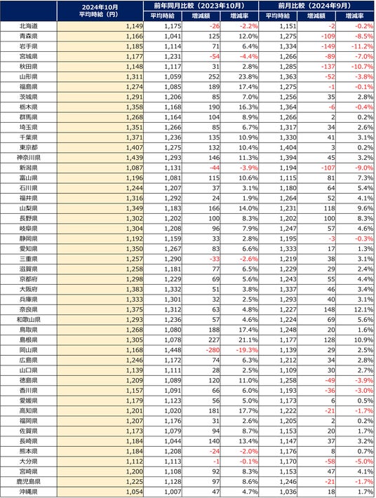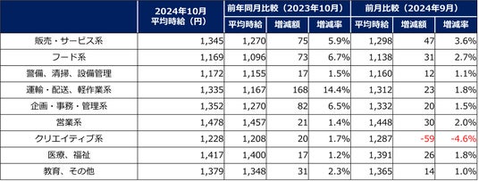 全国・前年同月比 時給上昇額TOP3(2024年10月度)