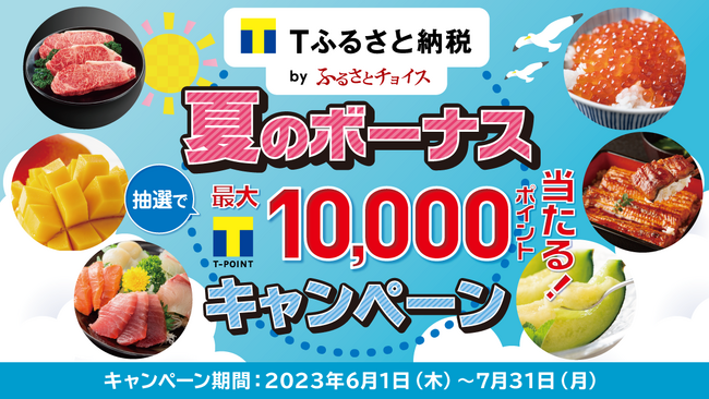 CCCMKホールディングス株式会社(本社:東京都渋谷区、代表取締役社長 兼 CEO:高橋誉則、以下「CCCMKHD」)は、自治体への寄付金額に応じてTポイントが貯まるふるさと納税サイト「Tふるさと納税」(https://tfurusato.tsite.jp/)にて、6月1日(木)から7月31日(月)にかけて「夏のボーナスキャンペーン」を開催いたします。