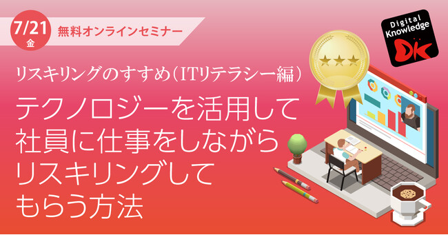 導入実績2000超を誇る 1995年創業のeラーニング専門ソリューション企業、株式会社デジタル・ナレッジ(本社:東京都台東区、代表取締役社長:はが弘明)は、2023年7月21日(金)15時より、『リスキリングのすすめ(ITリテラシー編)~テクノロジーを活用して社員に仕事をしながらリスキリングしてもらう方法~』(https://www.digital-knowledge.co.jp/archives/32838/?pr)をオンライン開催いたします。