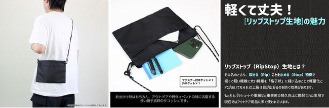 キャンプ中の志摩リンをあしらったタフでしなやかな生地のサコッシュ。撥水機能も抜群!