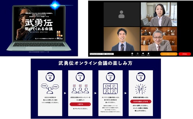 「昔の俺は・・・」「俺の伝説は・・・」なんて話しを聞いてもらえる場がなくなった今。でも分かって欲しい、頑張ってきたことを誰かに聞いて欲しい。そんな思いを叶えてくれるオンライン会議です。8人の聞き上手から気分に合わせて参加してもらいたい3名を選択。嫌な顔ひとつせず、話し手の気分が良くなるくらい、上手く聞いてくれるコンテンツです。