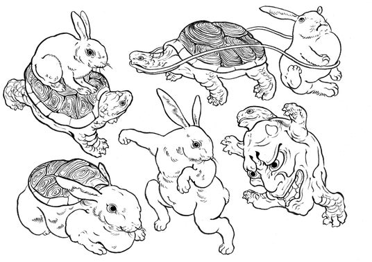 《うさぎとかめ》420×297mm、紙に墨 13,200円(税込)