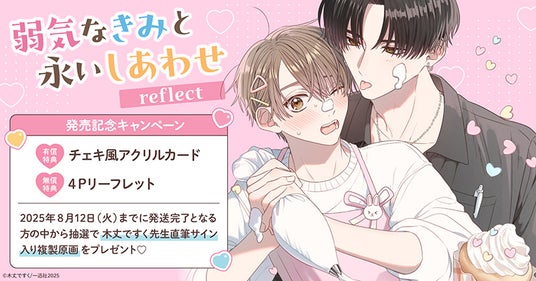 株式会社TORICO(本社:東京都千代田区、代表取締役社長:安藤拓郎)が運営するホーリンラブブックスにて、木丈ですく先生『弱気なきみと永いしあわせ reflect』発売記念キャンペーンを開催いたします。