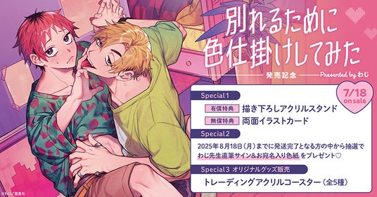 株式会社TORICO(本社:東京都千代田区、代表取締役社長:安藤拓郎)が運営するホーリンラブブックスにて、わじ先生『別れるために色仕掛けしてみた』発売記念キャンペーンを開催いたします。