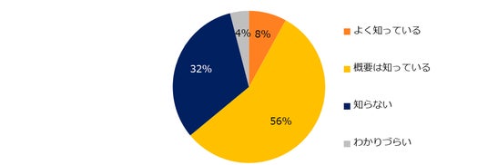 「給与のデジタル払い(※)についてご存知ですか?」(※2023年4月から解禁され、”〇〇pay”など決済アプリや電子マネーで、企業が社員に給与を振り込むことができる制度)と伺うと、64%
