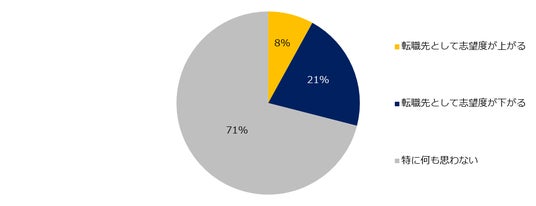 続いて、「転職先を選ぶ上で”給料のデジタル払いOKの企業”についてどう思いますか?」と伺うと、転職先として志望度が「上がる」(8%)に対し、「下がる」(21%)が13ポイント高い結果となりました。具体的なコメントも紹介します。