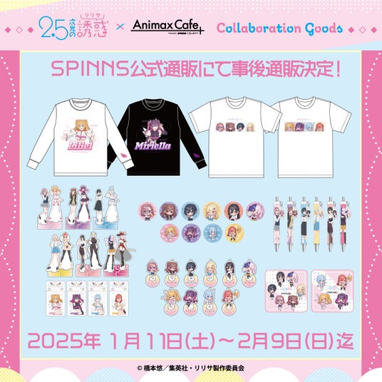 アパレル事業を展開する株式会社ヒューマンフォーラム(本社:京都市中京区 代表取締役会長:出路 雅明)が運営するアパレルブランド「SPINNS」は、2024年7月より絶賛放送中のTVアニメ『2.5次元の誘惑』コラボレーションカフェの限定グッズをSPINNS公式通販にて販売する。