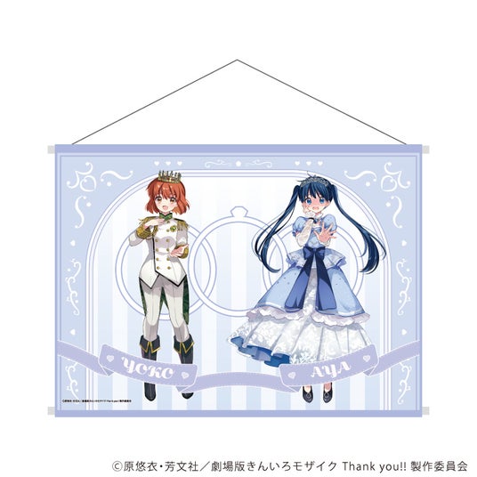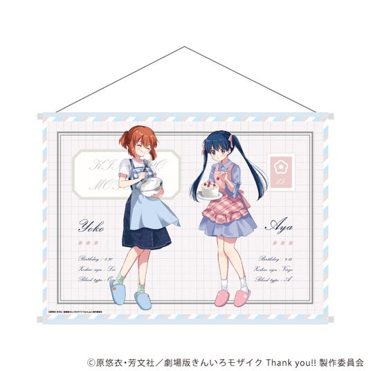 B2横タペストリーは、およそ73cm×52cmと圧巻の大きさ。タペストリーとともに花束や今まで集めた『きんいろモザイク』のグッズを並べて、連載開始15周年&2人の誕生日を盛大にお祝いしましょう!