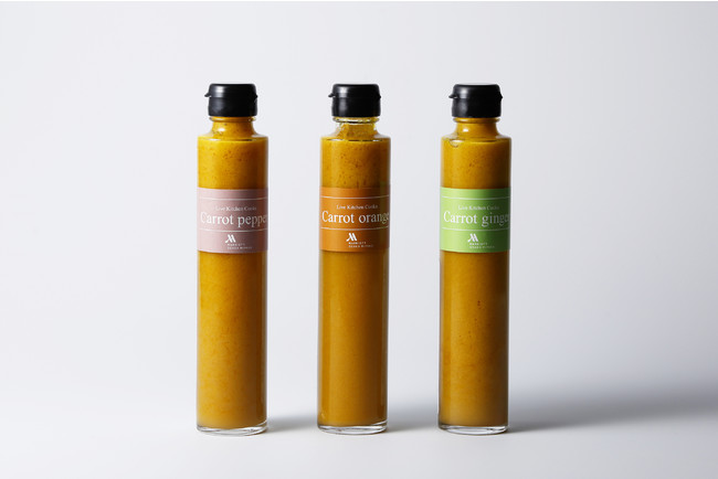 「COOKA」のサラダコーナーで人気の“人参ドレッシング”をベースに、ペッパー、オレンジ、ジンジャーの3種類のフレーバーを用意しました。ホテルの味をご家庭で楽しめるのはもちろんのこと、食卓を彩るラインナップです。また、贈答品や手土産にもおすすめです。