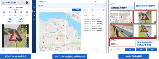 これまで、防災用途での使用時に受信するアラート通知に基づく被災状況や対策状況の記録といった業務のデータ管理は、別のシステムが必要でした。今回のカスタムマップ機能追加により業務のデータも「Bind Vision」で一元管理が可能となり、業務の効率化と情報の一貫性向上を促進します。