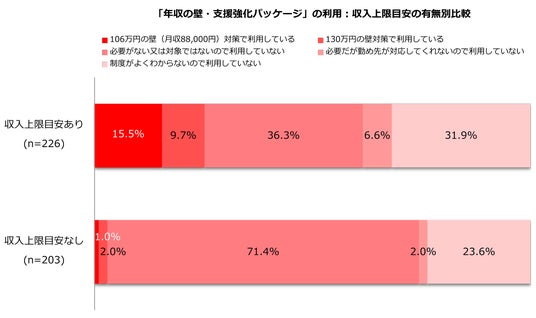 4.年収の壁・支援強化パッケージの利用/収入上限目安の有無と子どもの数別比較