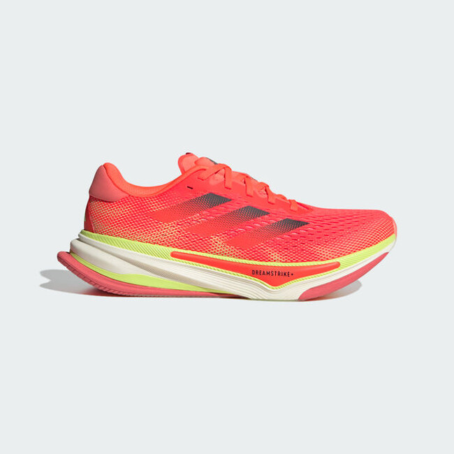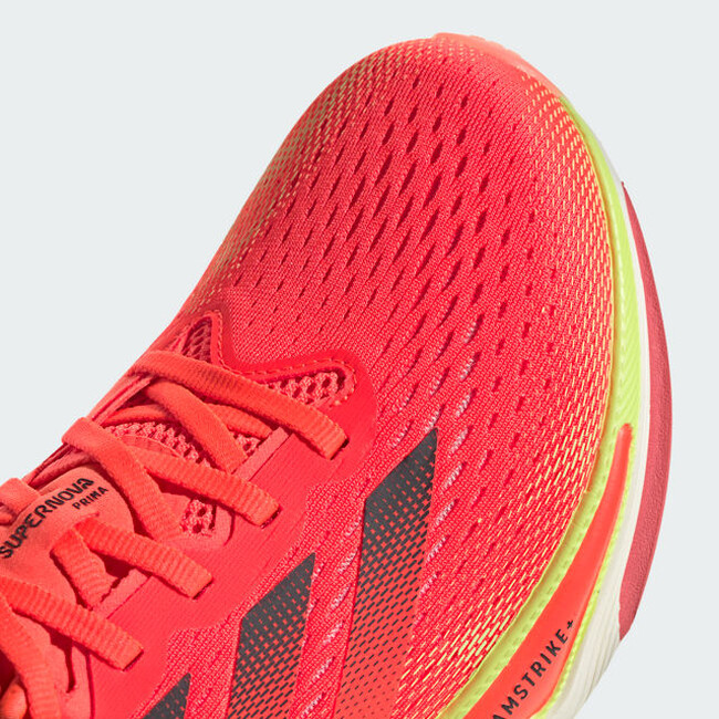 そして今回、レベルアップを目指すランナーに向けたモデル「SUPERNOVA PRIMA」が新たにラインアップに登場します。本モデルでは、高機能ランニングシリーズ「ADIZERO(アディゼロ)」に搭載されたミッドソール素材「LIGHTSTRIKE PRO(ライトストライク プロ)」をヒントに開発された次世代クッション素材「DREAMSTRIKE+(ドリームストライクプラス)」を「SUPERNOVA RISE」よりも13%増量※。つま先からかかとまでフルレングスで配置された「DREAMSTRIKE+」フォームが、前足部の強い蹴り出しを叶えるとともに、毎日のランニングにこれまで体感したことがない走り心地と快適さを提供します。