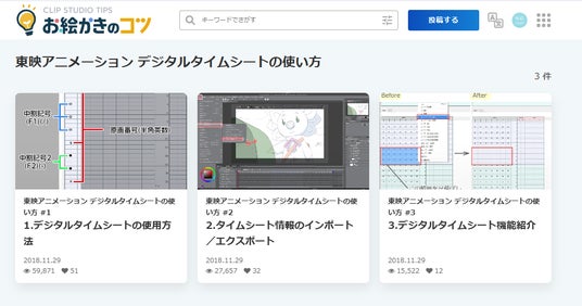 ▼東映アニメーション デジタルタイムシートの使い方(CLIP STUDIO TIPS)