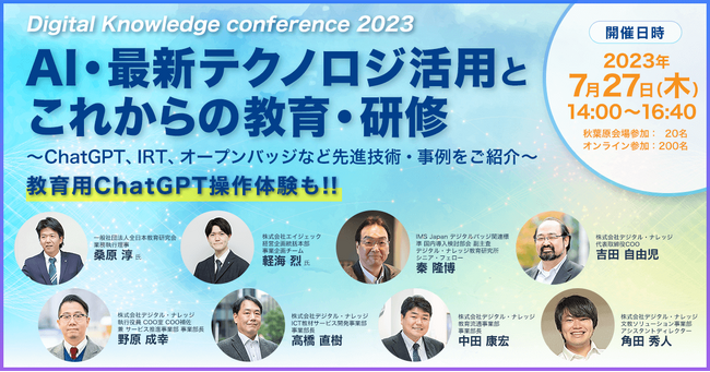 導入実績2000超を誇る 1995年創業のeラーニング専門ソリューション企業、株式会社デジタル・ナレッジ(本社:東京都台東区、代表取締役社長:はが弘明)は、2023年7月27日(木)、特別講演『AI・テクノロジの最新動向とデジタル・ナレッジの取り組み』 (https://www.digital-knowledge.co.jp/online-conference/?utm_medium=2023&utm_media=pr)を開催致します。