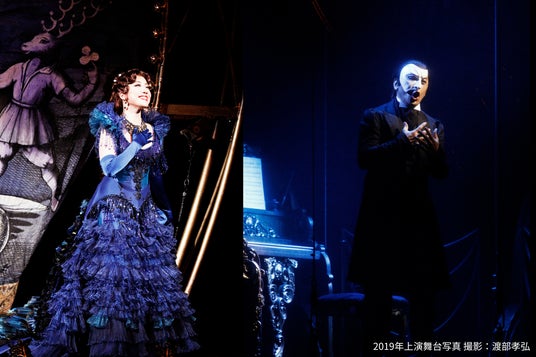 2019年上演舞台写真 撮影:渡部孝弘/左より)クリスティーヌ役:平原綾香、ファントム役:石丸幹二