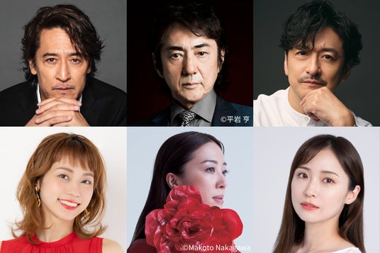 上段左より)橋本さとし、市村正親、石丸幹二/下段左より)真彩希帆、平原綾香、笹本玲奈