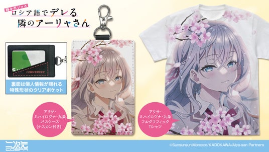 デレるアーリャさんの可愛さが全身にあふれるフルグラフィックTシャツに、アーリャさんが美麗にプリントされた高級感のあるパスケースが登場。