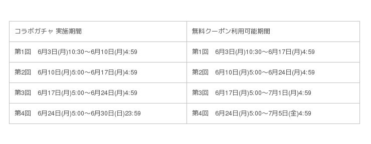 【コラボガチャ実施期間/無料クーポン利用可能期間】