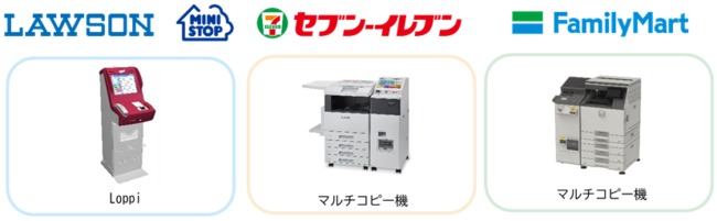 ※“マルチメディアステーション”とは、ローソン及びミニストップ店舗では「Loppi」、セブン‐イレブン及びファミリーマート店舗では「マルチコピー機」を指します。なお、コンビニ各社とも、一部店舗にはマルチメディアステーションの設置がございません。