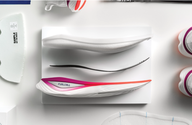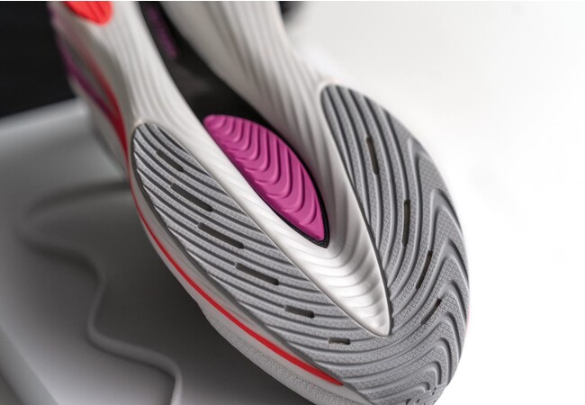 ルール限界の厚さにした2層構造のFuelCellミッドソールは、ソール全体にENERGY ARC(エナジーアーク)を搭載し、2種類の異なる繊維をMIXさせたフルレングスカーボンファイバープレートとの相乗効果により、ランニングエコノミーも改善され、レース終盤までスピードの維持をサポートします。