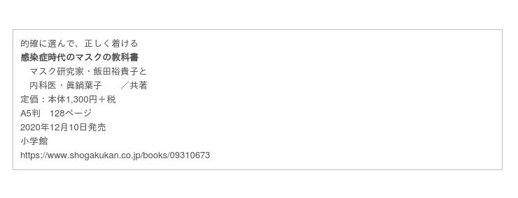 その基本的・日常的努力を改めて見直すための書籍が発売されました。毎日の生活に必要なルーティンや情報を、専門家2人がタッグを組み、「感染症対策とマスクの基本知識」について、わかりやすく解説しています。