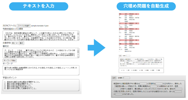 AIが、文脈的に無理なく、出題者の意図に沿った穴あき問題を自動生成します。