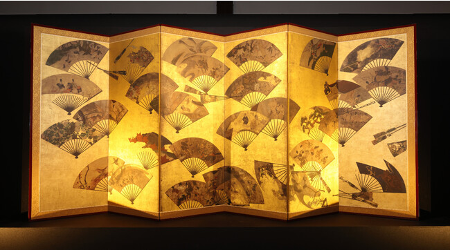 「扇面散図屏風」は、江戸時代(17世紀)に描かれた作品で、保元の乱・平治の乱や伊勢物語などのさまざまなモチーフが描かれた多数の扇子の絵が金屏風に貼り付けられています。オリジナルの文化財は、米国・スミソニアン国立アジア美術館が所蔵しています。同美術館の所蔵作品は、設立者の遺言により門外不出とされているため、現地を訪問しない限り、鑑賞することができません。高精細複製品を制作することで、日本絵画の名品とされる本作品の日本への里帰りが実現しました。